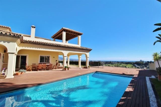 A two-story luxury villa, located about 2 km off the main road between Estepona and Puerto Banus in El Paraiso Alto urbanization. The villa boasts a breathtaking view of the Mediterannean sea as well as the near by golf course.