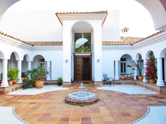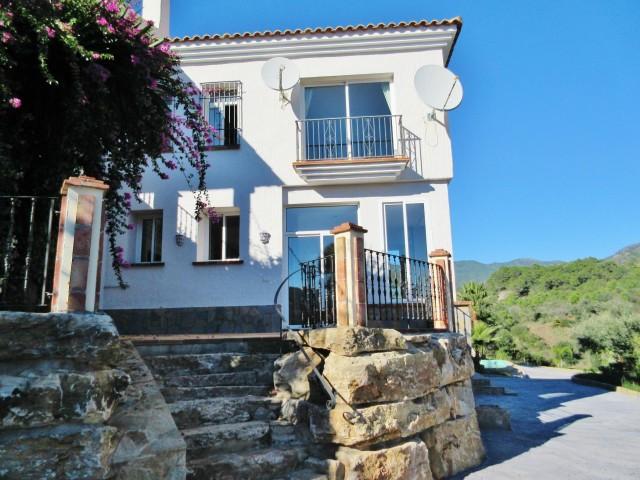 Villa on large plot of land Estepona. Southeast facing villa on large plot of land of over 70.000 m² in the heart of the countryside, yet only a 15 minute drive from amenities, offering beautiful sea and mountain views. Possibility to purchase plot next door of 500.000 m². The main house features tile floors, fully fitted kitchen, laundry room, fireplace, beamed ceiling, wine cellar and alarm sytem, it also has a separate 2 bed/ 2 bath apartment of 180 m², there is also a main patio, garage for 2 cars, storage, water well, large private garden with swimming pool and river!!!!