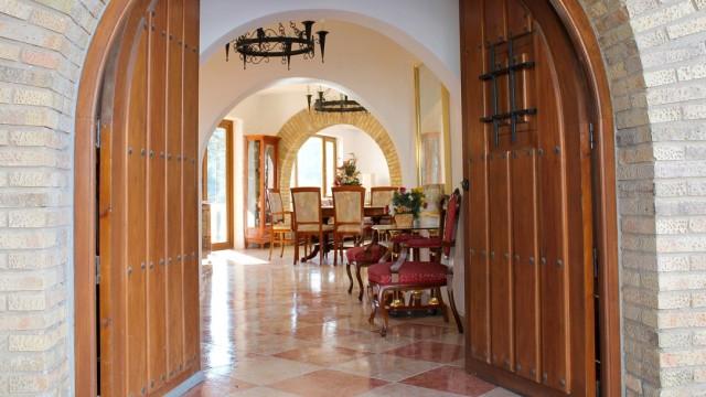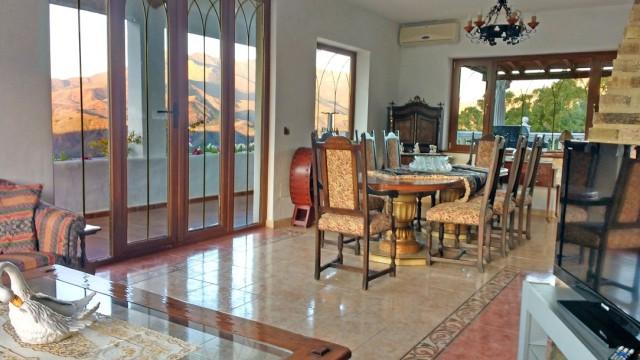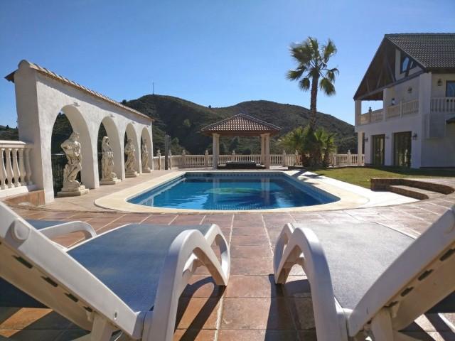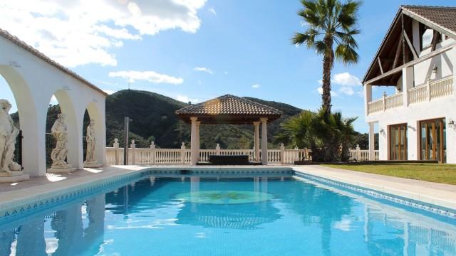 Villa for sale in Mijas Costa consisting of a living room with fireplace, a dining room, 5 bedrooms, 5 bathrooms, a fully fitted kitchen and several terraces. Separate two bedroom apartment. Heated pool. Jacuzzi. Garage. Stables. Plot: 62.000m2. Currently running as wedding venue and holiday rentals.
