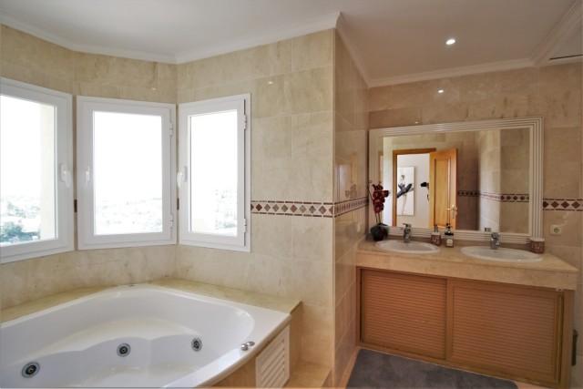 Beautiful southwest facing villa with panoramic sea and golf views and is located on a golf resort in Benahavis. The main features include fabulous private garden with swimming pool, spacious terrace, air conditioning hot/ cold, marble floors, bodega, fireplace, fully fitted kitchen, laundry room, double glazing, satellite T.V., alarm system, basement, safe, garage for 2 cars and storage.