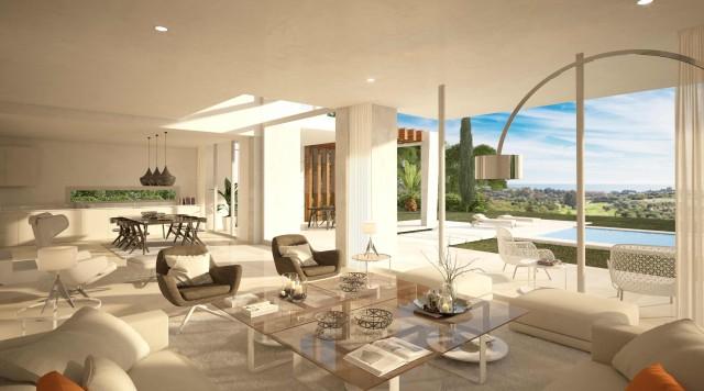 Luxury villas within a gated community in an elevated position within a golf resort in Marbella. Offering spectacular golf and sea views, these villas boast private gardens with salt water swimming pool, top qualities throughout, home automation system, alarm system, air conditioning hot/ cold, under floor heating, fitted kitchen, basement and there is a choice of 3 or 4 bedrooms.
