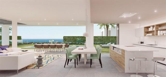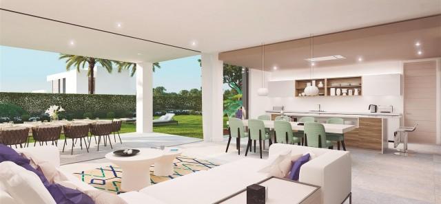 New villa development in contemporary style for sale in Estepona. LAST modern villa designed by using the latest technologies to provide contemporary living. Made up of an open plan living space, large floor-to-ceiling sliding doors, a panoramic terrace with sea views, 2 main bedrooms, walk-in closets in each bedroom, a bathroom with open-air shower, 3 meter high ceilings, and indigenous gardens. We will give you the opportunity to further personalise your living environment by giving you the choice of materials, finishing, kitchen styles and/or to create an additional 4th bedroom, all free of charge. The Villas have been specially designed to facilitate contemporary living. The open-plan living space invites the bright natural light in, creating an atmosphere of optimism and positivity. A double height ceiling with a beautiful staircase over an indoor garden welcomes you to your new home. The three-bedroom villas feature one master suite on the ground floor with stunning open-air shower, a walk-in closet and private garden, as well as two suites with walk-in closets and panoramic terraces on the first floor. he spacious back porch with three metre high ceilings and the floor-to-ceiling sliding doors create the sensation of being enveloped in the outside landscape and enable you to enjoy this natural environment to the full. Whether physically merging the line between indoor and outdoor spaces or simply having an indoor garden or an open-air private shower, life at The Villas sets a new standard of living. The site of The Villas has been skilfully used to ensure unique views from each of the villas.The stunning view of the Mediterreanean is the perfect backdrop for this exclusive development. The panoramic terrace is a great place to come back to relax and enjoy in a peaceful setting.