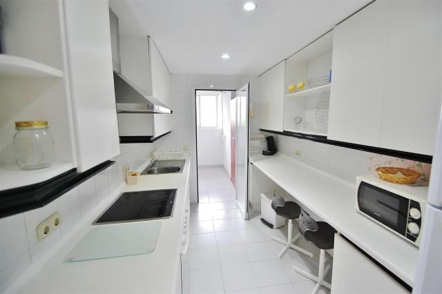 Apartment for sale in Puerto Banus. In perfect condition, with excellent location and with a great rental potential. Only 2 minutes walk to the beach and surrounded by 5 golf courses, this apartment is within a gated community with concierge, 24 hour security with cameras. It has a communal swimming pool, paddle tennis court, gymnasium and large terraces with solarium in communal areas with nice views to the sea and the mountains. With all the services right at your door step, next to El Corte Ingles, Marina Banus shopping center and with all the best shops in Marbella located in Puerto Banus. The apartament has marble floors, one double bedroom en-suite with exit to the terrace, another double bedroom, fitted wardrobes, living room with direct access to the terrace, guest bathroom, fully fitted kitchen, air conditioning hot and cold and a confortable entrance hall with wardrobe.