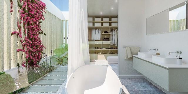 The three-bedroom villas are among the most attractive and best-located modern homes in Marbella, offering optimal comfort and luxury in a contemporary setting, with a bedroom suite on the ground and two on the first floor. All suites feature their own dressing room and terrace, marking the modern refinement that is the defining characteristic of living in The Villas. The spacious back porch with three metre high ceilings and the floor-to-ceiling sliding doors create the sensation of being enveloped in the outside landscape and enable you to enjoy this natural environment to the full.