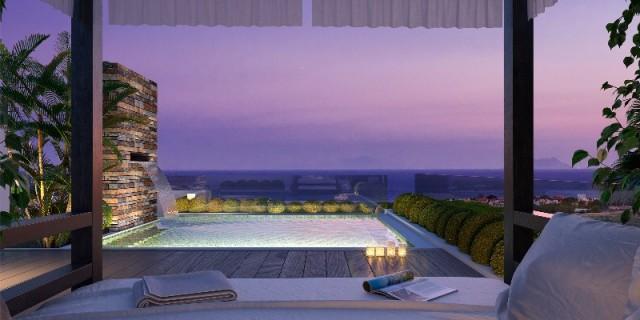 The properties are set on spacious yet manageable plots that are mostly level whilst offering excellent views over the surrounding countryside and nearby sea. A stylish pathway leads through the landscaped gardens to the front entrance, whose hallway opens onto on the of villa''s main features - the large, open plan living room. This area is made up of a spacious living room and top-spec modern kitchen with dining room. It is the centre of the home, where large floor-to-ceiling windows allow in natural light and views, sliding open to provide direct access to an expansive terrace with outdoor lounge and dining areas.