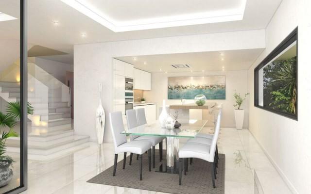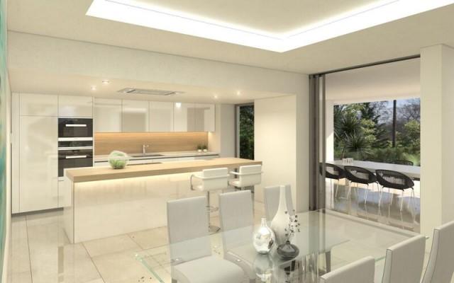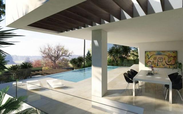 Oasis is as the name suggests a heaven of peace and tranquility in an enviable location close to La Resina Golf club on the New Golden Mile. This small south facing gated oasis of 8 modern villas has been designed to provide a contemporary functional home with large open plan living areas that connect the best of interior and exterior living spaces by the use of large windows, natural stone and top quality materials throughout. The addition of a basement and solarium are optional allowing homeowners to add a further bedroom and personalize the basement to suit their individual requirements. This unique development of just 8 villas is complemented by a family membership of La Resina Golf Club. Much thought and detail has gone into the design to create a comfortable villa with good quality specifications that offer a superb lifestyle choice for those looking for a new home by combining clean architectural lines and spacious living areas designed for Mediterranean Living Quality materials have been used throughout and this is visible in the choice of beautiful open plan Italian kitchens which feature top appliances as well as the stylish bathrooms equipped with oversized showers and freestanding baths, wooden floors in the bedrooms and porcelain flooring throughout the rest of the villa are just a few of the highlights offered within this boutique development.