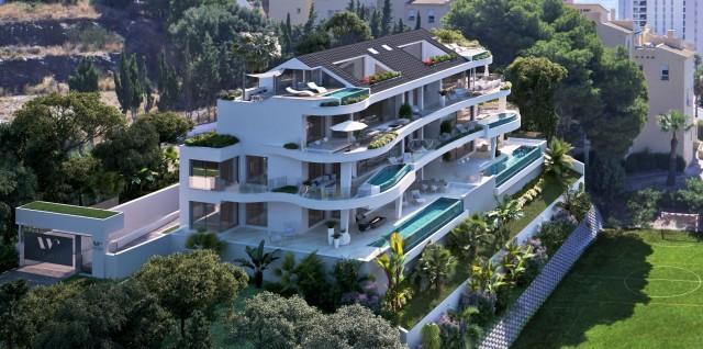 Six new exclusive apartments with cutting-edge design, located in an exclusive area of Torrequebrada, Benalmádena, less than 20 minutes from Málaga Airport. Only 90 meters from the beach and with amazing uninterrupted 180º panoramic views to the Mediterranean Sea, all apartments have floor-to-ceiling glass windows which opens up completely, thus seamlessly unifying indoor and outdoor living for maximum enjoyment of Costa del Sol's excellent micro-climate.Equally, you can enjoy the spectacular views from your own private infinity pool at the terrace, giving you the feeling of living in a villa, yet with the beneficit of living in an apartment, almost free from maintenance. The project will be built to Scandinavian high standards, adapted to the Spanish environment, with noise insulation, underfloor heating and wall insulation.