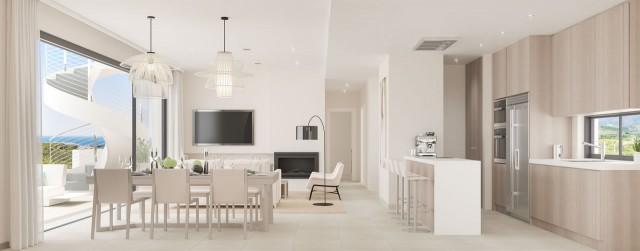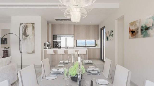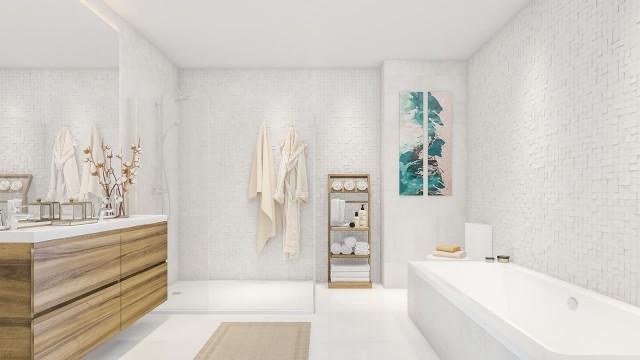 Large dining rooms with integrated kitchens, fully EQUIPPED WITH SIEMENS appliances (or similar), with furniture and hood flush to ceiling and American fridge in the penthouses, two terraces and, overlooking the Sierra de Casares and Estepona. The main bedrooms with bathrooms en suite, dressing rooms, wardrobes with lighting with LED strips and terrace. Bathrooms with rain shower, suspended toilet, hidden cistern and whirlpool in the penthouses
