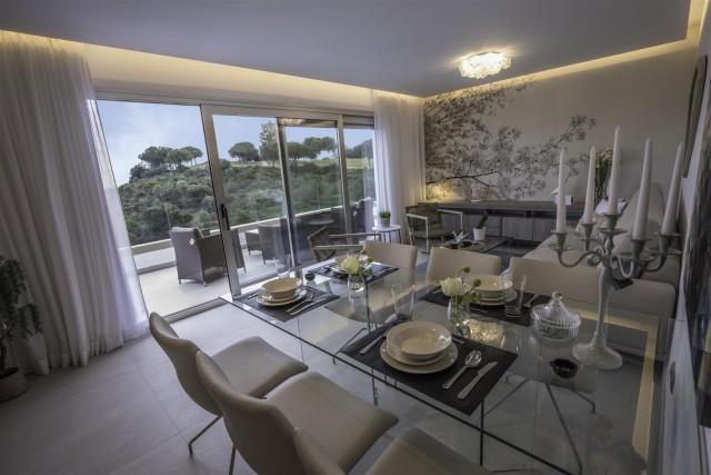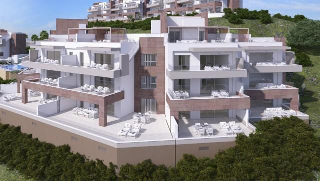 New contemporary residential apartments for sale in the valley of Mijas, situated next to the prestigious golf courses and opposite the Club House. The new complex has panoramic views of the golf course and the mountains of Mijas. 20 penthouses with 3 bedrooms and spectacular solariums and 40 sunny apartments with 2 and 3 bedrooms private gated complex with communal gardens and swimming pool. The complex and the golf course are perfectly integrated within a natural landscape and with spectacular surroundings. The build quality stands out as do the new luxury materials and finishes. Surrounded by nature, the first phase is now on sale with 12 penthouses and duplex with private solarium and 24 apartments with 2 and 3 bedrooms. Private residential complex with communal gardens and pools. High quality finishes complying with European standards for construction. All the apartments have spectacular views of the golf course, coast and mountains. Large sunny terraces. Private underground parking and storage room included in the price. Solar panels, thermal and acoustic insulation, natural ventilation system. Special privileges on all facilities and services of the Golf complex and Energy certificate type B. The expected handover date for the phase 1 is November 2019