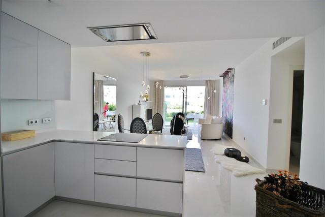 OPPORTUNITY!!! New Contemporary Groundfloor apartment for sale on the New Golden Mile. Modern style with 4 bedrooms, this apartments is located in a brand new gated complex, offering superb communal gardens with salt water swimming pool, spacious terrace and garden looked after by the community, porcelain floors, fully fitted kitchen, air conditioning hot/ cold, double glazing, parking, storage and nice views to the garden and the pool area. Ready to move in...