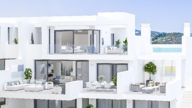 La Cala Golf Resort is the latest new development with 54 contemporary 2 and 3 bedroom apartments and penthouses in La Cala Golf resort. The design of the buildings, the location of the development and the most amazing views over the fairways, the Mijas mountains and the Mediterranean make this the dream location not only for golf lovers, but also for everyone looking for a property with panoramic views, lots of privacy and spacious indoor and outdoor living accommodation! All apartments and penthouses come with spacious living rooms, large windows, fully fitted open plan kitchens with breakfast bar, bright and spacious bedrooms, modern bathrooms and large terraces ranging from 53 m² to 112 m². All ground floor apartments also benefit from private gardens up to 121 m²! La Cala Golf Resort features a large outdoor swimming pool set in mature gardens, underground parking and storage facilities to each individual property, a gym and wellness area with SPA, situated within a gated secure community.