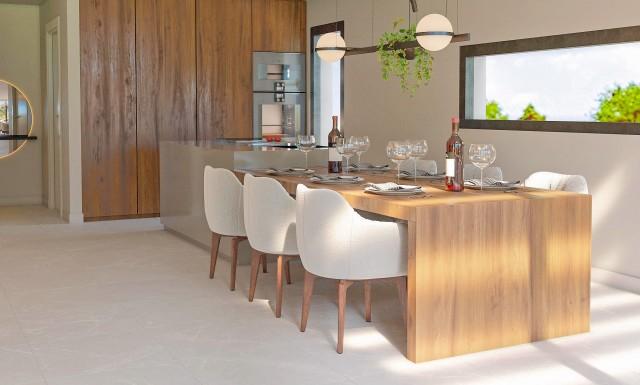 Light and the sensation of freedom are the leading features, with double height areas, floor-to-ceiling windows and crowned by a large solarium terrace that covers the entire upper part of each of the houses. Comfort and quality of life are always present at Elysium Golf. Each villa has almost 400 m2 built area, private infinity pool, parking for two vehicles, several terraces and garden areas. The villas are configurable and can be adapted to the taste of their owners with multiple options to make them unique homes. The kitchen needs to be installed by the buyer. Underfloor heating throughout, leisure room, gym or spa, and even the possibility of including up to two more bedrooms.