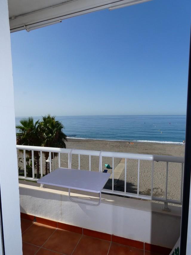 Fantastic first line beach duplex penthouse in Algarrobo Costa. Perfect as an investment for rentals or holiday home. Located on second floor, the property offers incredible sea views. Comprises open plan living room / fully equipped kitchen, bathroom with a shower room, and double bedroom. Large windows in the living room ensures spectacular sea views. Upstairs, there is a seating room area with an extended space for a double bed, built-in wardrobes and bathroom with bathtub. Other features include central A/C, underground garage space with adjacent storage room. The property is sold totally furnished. Ready to move in. Call for a viewing now!!!