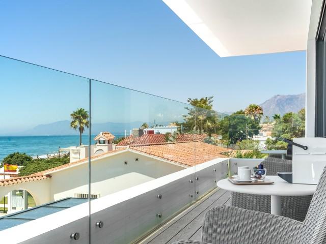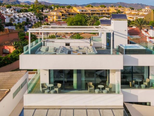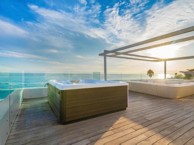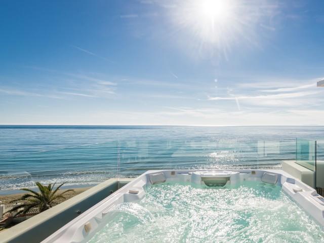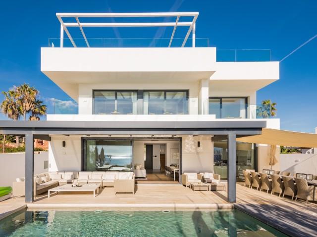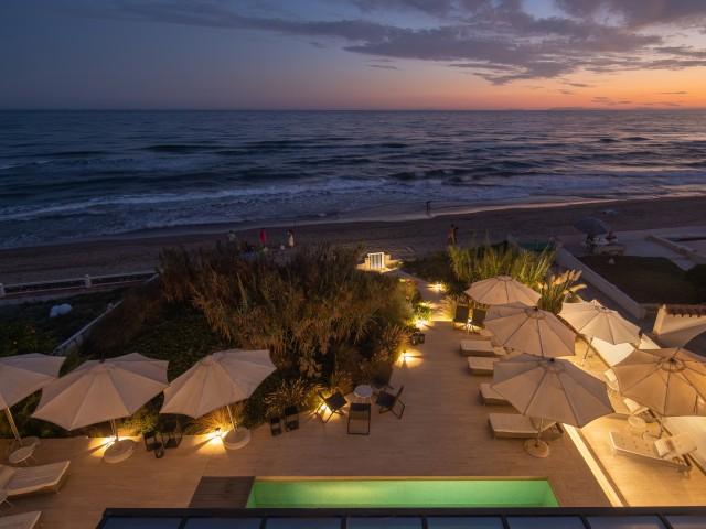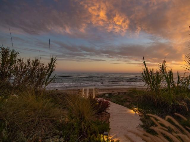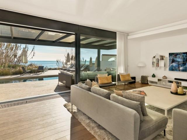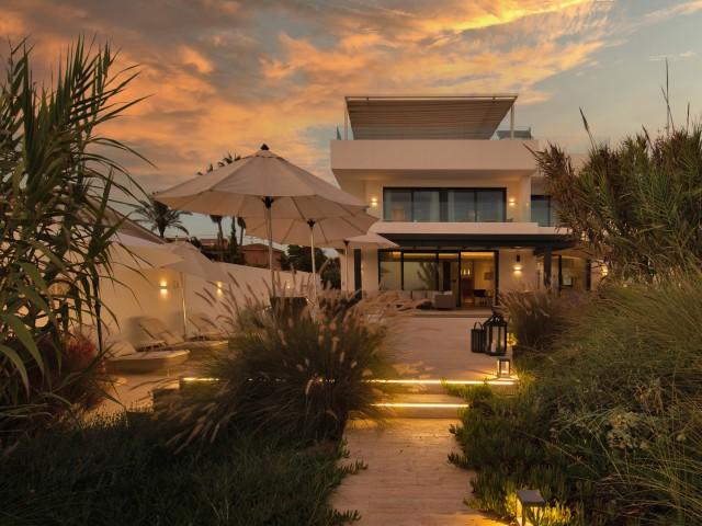 This spectacular front line property is set right on the Costa Bella beach surrounded by golden sand and natural dunes. The location, east side of Marbella, is close to all the facilities and just a short distance from Marbella centre and airport of Malaga. The property is newly-built to the highest standards, designed by top Marbella architect Jose Carlos Moya, standing out with its modern sophistication and simple elegance. Facing to the south west, the property enjoys superb sea views and magnificent sunsets.