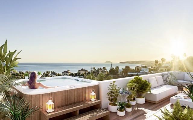 Scenic, a New Luxury residential project in Estepona, Costa del Sol of 74 apartments ranging from 1 to 5 bedrooms. Scenic is located in a unique natural setting, with absolute tranquillity and panoramic views across Estepona of the Mediterranean, Africa and Gibraltar. Scenic has a 24 hr Concierge, and infinity swimming pool ( half Olympic size ) and a Gymnasium area. Located very close to Parque de Las Mesas, one of the quietest areas of Estepona. All the properties are superbly well-appointed with a spacious design and are just a few minutes from the Estepona Marina, next to the historic centre of the Old Town Additionally, this new development has access to the A7 and AP7, connecting this area perfectly to the centre of Malaga, the airport and the train station.