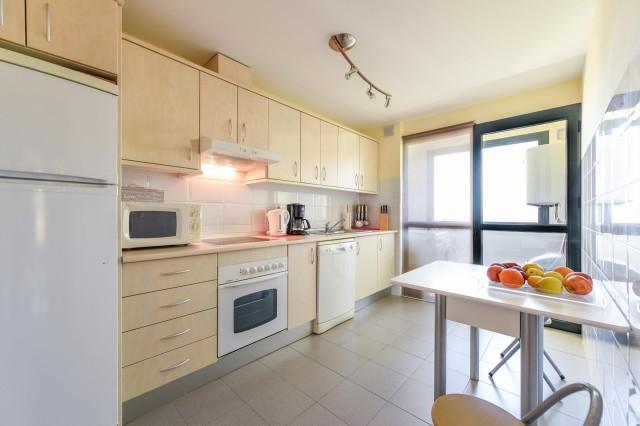 Spacious living room with sliding doors to the terrace. INSIDE AVAILABLE: Central air conditioning cold / hot in all rooms and a living room with two sofas and a dining table with 4 chairs. ENTERTAINMENT: Flat screen TV with some international channels. INTERNET