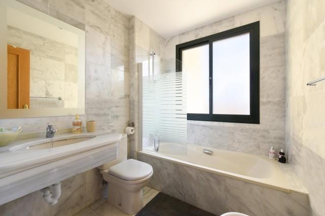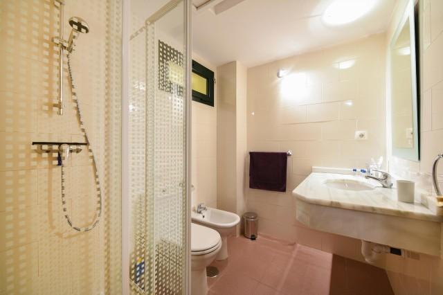 Two bedrooms, both with enough wardrobes and air conditioning. Main bedroom with bathroom en-suite a double bed of 160 x 200m and sliding doors to the terrace. The second bedroom has 2 single beds of 90 x 200 m. A children high chair and baby cot are available on request.
