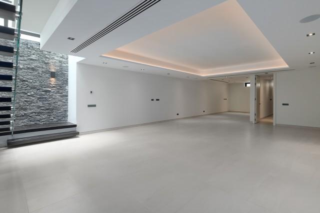 Lower floor: Large multi functional room fitted for entertainment area, games room, cinema. One bedroom and bathroom.