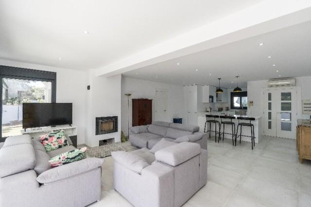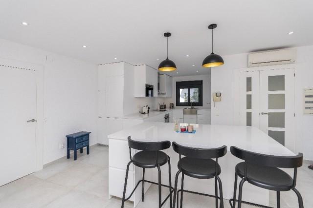 This south facing villa has sea views from upstairs and is composed of 3 bedrooms en suite and is situated on a flat plot with a lovely pool and set in matura gardens with sub tropical plans and trees. The open plan kitchen is beautifully done and gives access to the spacious living room. The villa offers a carport with space for 2 cars inside the grounds. The house has been completely renovated to a high standard recently.