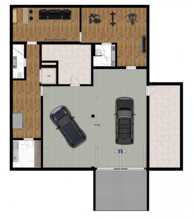 On the 0 floor of the building there is a 186,1m2 garage (4 cars), utility room,