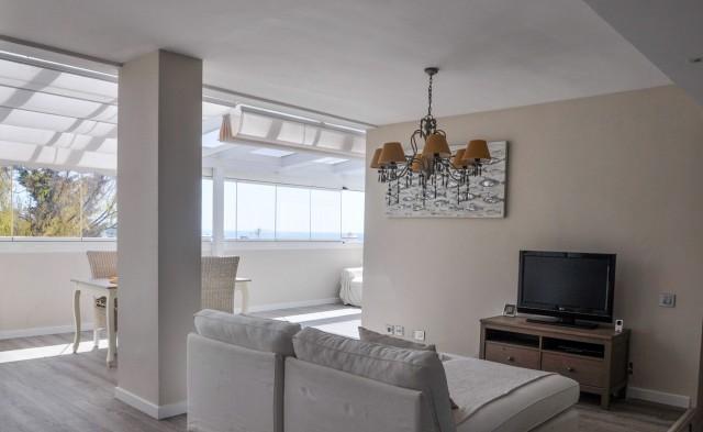 Located in the heart of the Marbella Golden Mile, this development has fantastic tropical gardens, children''s playground, five community pools, gymnasium, sauna and paddle courts. Unbeatable location, just a few minutes walk to some of the best beaches, restaurants, shops and all amenities. The penthouse has an integrated kitchen, high ceilings and has been reformed with exceptional qualities and an amazing roof terrace with sea views. Large private parking space and storage.