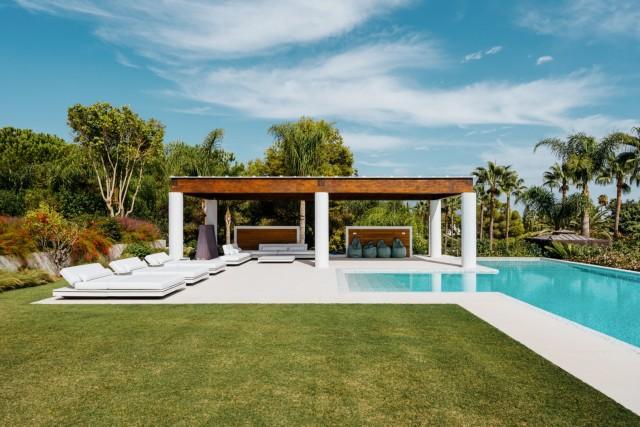 The gorgeous accommodation features living, seating and dining areas both inside and al fresco, a fully-fitted, superbly equipped modern kitchen with a central island and informal dining area. A separate dressing room will host your designers’ collections. The entertainment areas offer everything you can expect from a genuinely luxury house: SPA with an indoor swimming pool, among many others. Great outside area with a spacious swimming pool, outrageous water objects and mature subtropical landscaped gardens keep the same style and evoke the feeling of beauty and harmony. We can assure you you’ve never seen a pool and garden like this one!