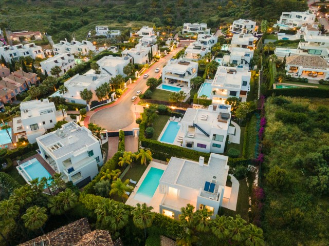 Modern luxury villa for sale in Nueva Andalucia. Located in a gated secure community and close to all the beautiful golf courses in Nueva Andalucia, within minutes drive to all amenities and Puerto Banus. With excellent qualities and views, the villa is within an exclusive boutique style community, located in a unique and ultra-secure setting, in the heart of the Golf Valley of Nueva Andalucia. Situated in a quiet and peaceful environment, this contemporary villa offers complete privacy as well as being only a short distance to all amenities and the most prestigious golf courses.