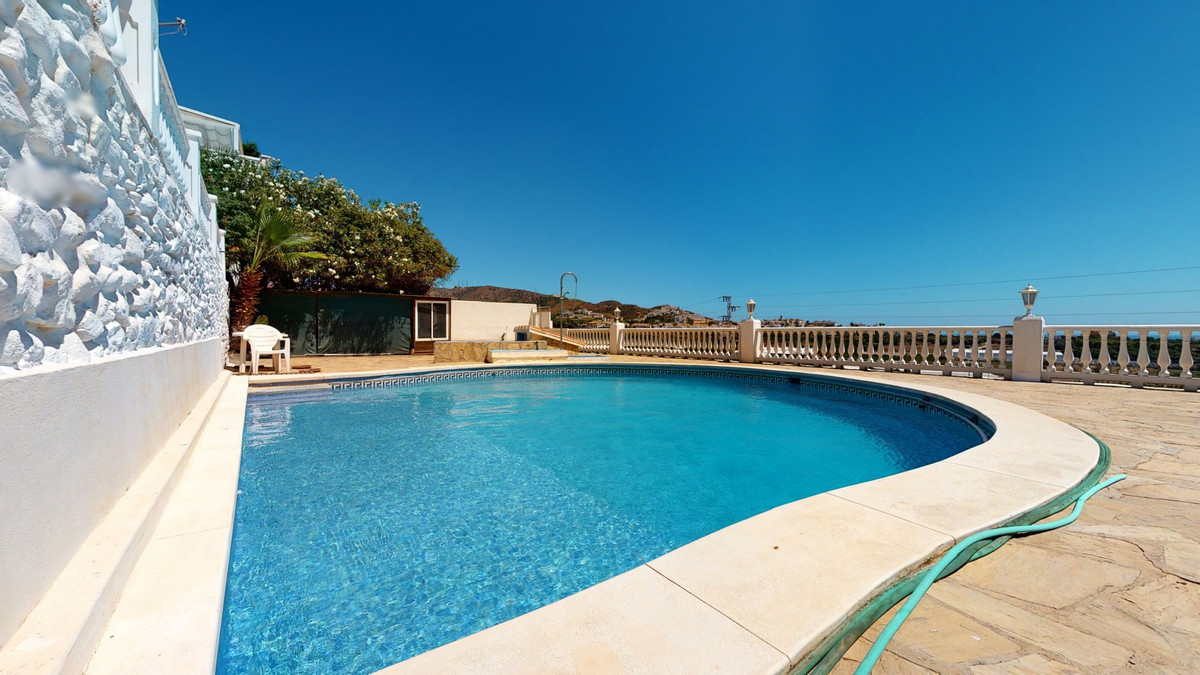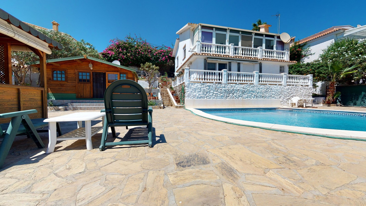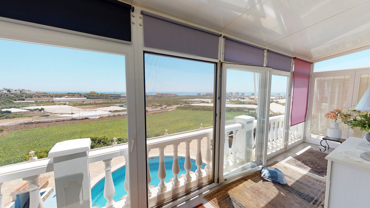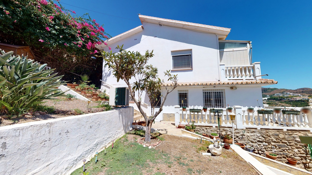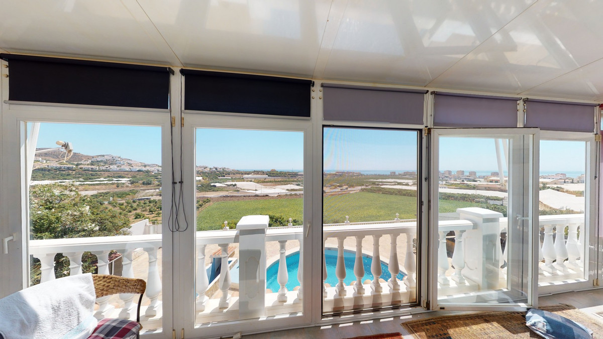 For Sale, Villa, Torrox, Malaga With wonderful views of the Mediterranean Sea and the Andalusian countryside, we present this charming villa, located in the municipality of Torrox. Good road connections, as well as close to the center of the town and the beaches of Torrox Costa, this property is located within a gated complex and has a built area of 150 m2, divided into 2 floors. On the ground floor there is a fully equipped kitchen, one of the bedrooms and a bathroom. The main part of the property there are 2 spacious bedrooms and 2 bathrooms. On the next floor there is another bedroom, a nice hall, a bathroom and a large living-dining room. Furthermore, it has a storage room, PVC double glazing and air conditioning. It has two fabulous terraces that allow you to enjoy numerous celebrations, meals and moments of tranquility in good company. In addition, there is a stunning swimming pool for personal use, available on a plot of 750 m2. There are two wooden constructions on this plot. There is also a second property, divided into two floors of 23 m2 each, which is distributed into a garage and a cozy guest flat. The guest flat has its own bedroom and bathroom. We are pleased to be able to present this dream property to you soon, either personally or via virtual viewing. Because this world, it is unique - just like our Axarquía. In Andalusia. On the Costa del Sol. Here, on the sunny side of life...