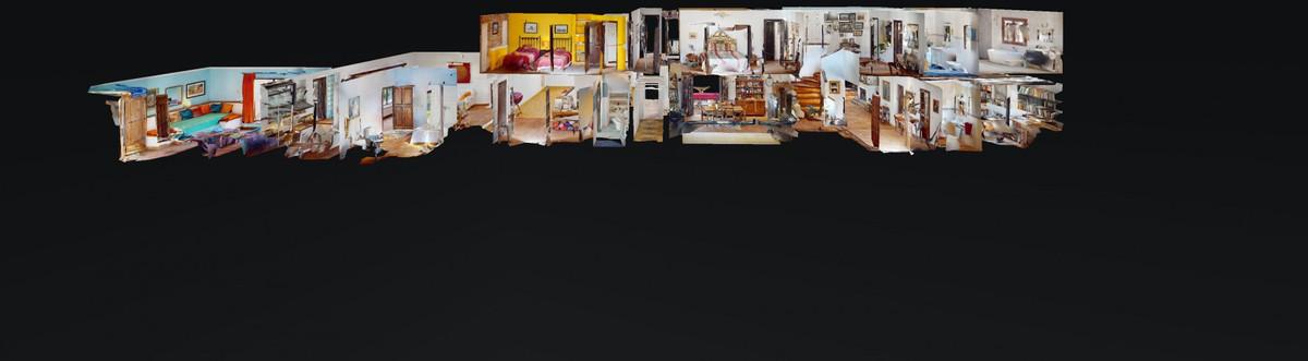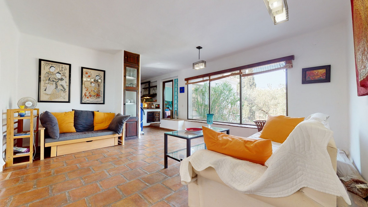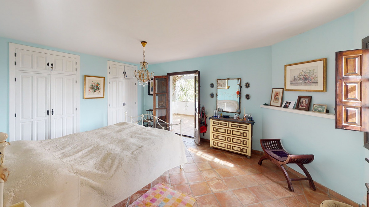 Are you looking for an oasis in harmony with nature? A place of peace and relaxation, where time runs a little slower? Yes?! Then we would like to show you this fantastic villa, in the mountains of Torrox. It offers an imposing, grand main house, a separate, small guest house and a pool, as well as 5,569 m2 of land, which is predominantly flat and thus offers countless possibilities. The layout of the property makes it possible to use the main house as two independent living units, with separate entrances. This fabulous property is perfect as a multi-family home, B&B or as an investment opportunity for a yoga center, event location, dance school or meditation temple.... An almost completely paved driveway leads you to a concrete parking area, which is partially covered. On this level is the charming guest cottage with its own covered terrace. It is equipped with a cozy, open living/dining area with a bed, a kitchen and a bathroom. The fireplace provides comfortable warmth in the cooler months. A driveway, as well as stairs, lead to the lower level. Another heavy wooden door with an iron horse door knocker grants entry into the spacious, imposing living area with fireplace, of the first part of the house. To the right is a guest toilet. Next to this is a room which is currently used as an office/library. It can also be heated to a comfortable temperature in the cooler seasons with the fireplace. We have adjacent a small, glazed room from which you can enjoy the view of the surrounding countryside. The large terrace at the front of the house offers breathtaking views of the famous white village of Frigiliana and the Sierra de Tejada in the background. Thanks to the hillside location, the hollow space under this terrace can still be closed and create more living space, if needed. From the living room, also with access to the terrace, one enters the spacious open kitchen with dining area. The interplay of traditional and modern has been perfectly achieved here. A glass patio door leads to the beautiful u-shaped and typical Andalusian courtyard with a fountain. On the second floor of the house there are three bedrooms and two bathrooms. The master bedroom has a large, modern bathroom with its own sauna, as well as a bathtub and shower. From two of the bedrooms there is access to an enchanted u-shaped balcony with views down into the Andalusian courtyard. Its wooden beams and plantings make it feel like you've stepped into another era. A corridor leads from this balcony to the second part of the house. On the second floor there is a bedroom with another fireplace, called the Sunroom because of its wall color. A staircase leads down to a huge open space with a large flat skylight that lets in natural light. The space can be used for a wide variety of possibilities. As a dance studio, atelier, or conference room. A feel-good temperature can also be created here with a great fireplace. On this level we also have a large heavy wooden door, the separate entrance to this part of the house. Right next to the entrance area there is a fully equipped bathroom. Through an open arch you enter a living area with a small, charming kitchen. Through almost floor-to-ceiling windows, you look out onto an idyllic pond and out into the countryside. There is another bathroom and two bedrooms, both with access to the outdoor area. The outdoor area includes a pool, many terraces with seating, a small vegetable garden and some olive trees. The bodega, or wine cellar, adds the finishing touches to the mansion and guarantees the right temperature for your wine. We are pleased to be able to present this dream property to you soon, either personally or via virtual viewing. Because this world, it is unique - just like our Axarquía. In Andalusia. On the Costa del Sol. Here, on the sunny side of life...