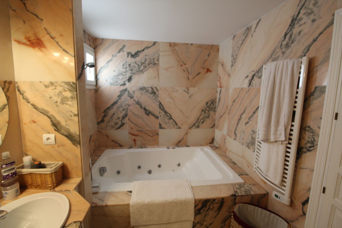 On the ground floor there is a spacious living room with an adjoining dining room and fireplace, a huge fully equipped kitchen with pantry and access to the laundry room, 4 large bedrooms with en-suite bathrooms and a beautiful Moorish style tea room with fabulous tiles and Nasrid friezes. From the living room you can access a large covered terrace that serves as a dining room and chillout area overlooking the garden and pool. Next to the pool there is a barbecue area with a pergola and hammocks, perfect for the summer.