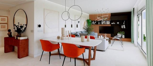Apartments in new phase for sale in La Cala Golf, Mijas Costa consisting of a lounge, 2 bedrooms, 2 bathrooms, a fully fitted kitchen and a terrace. Garage. Communal pool and gardens. Golf and mountain views. Quiet area. Sport facilities include 3 golf courses, tennis, football, fitness room, and Spa. Owners will get Privilege Card. Completed: September 2027.