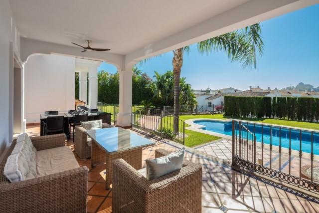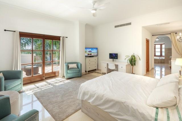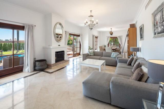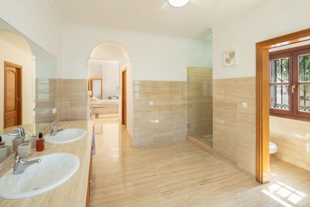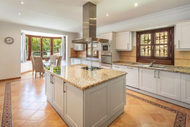 Spectacular villa surrounded by Golf Courses in Benahavis. Distributed over three levels, the villa comprises, on the entrance level; a large dining room and living room, spacious kitchen featuring a large central island and incorporating a breakfast area benefitting from the natural light of the bay windows and views of the banana trees.