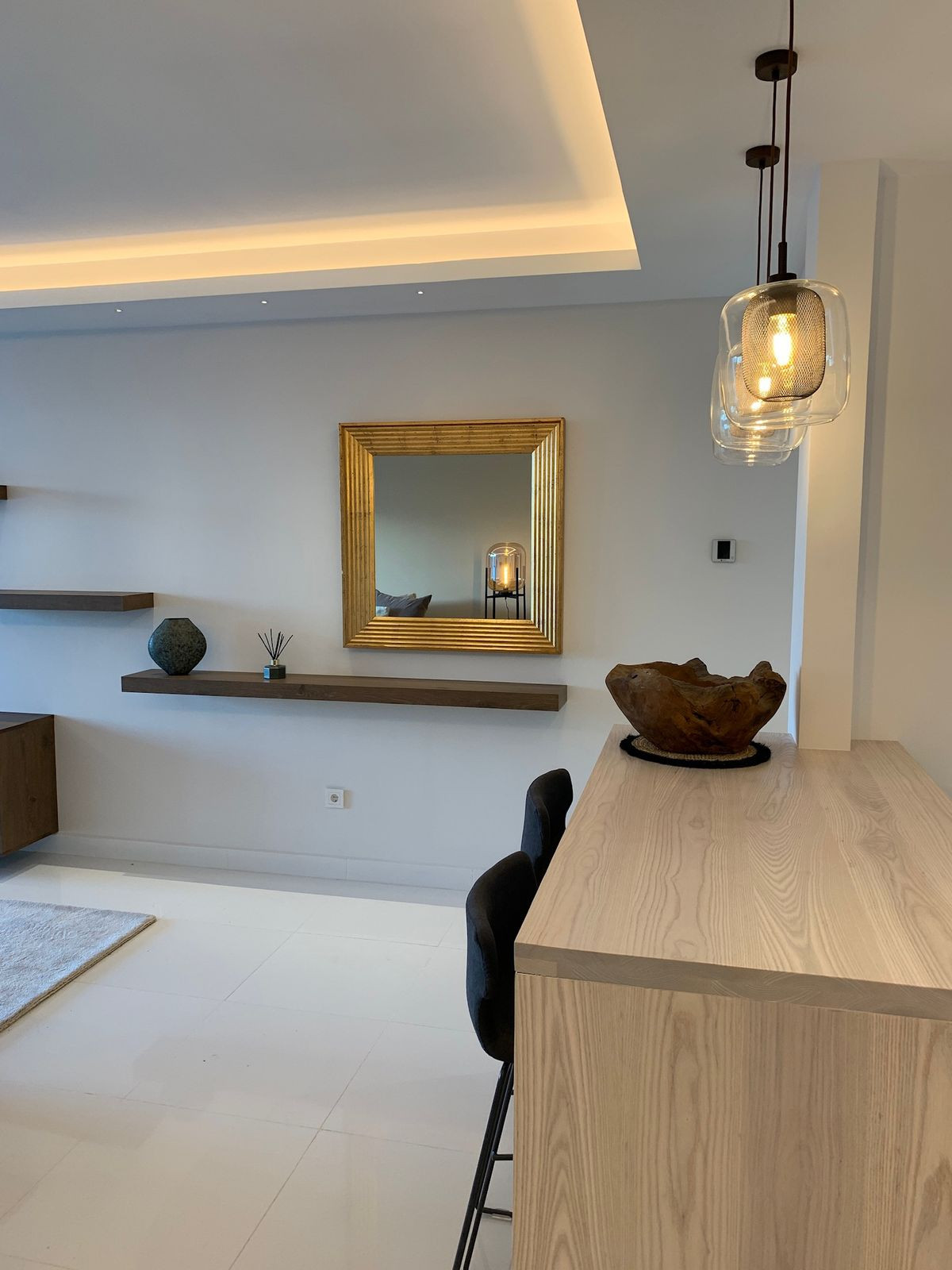 5* Luxury and contemporary middle floor apartment. The avant-garde architecture is designed by the famous architects Villarroel - Torrico @ Puente Romano Marbella. The setting is unique and just in front of Atalaya Golf ( 36 holes ) with unobstructed panoramic south orientated views, overlooking the golf courses, garden and parties sea view. Atalaya driving range is literally at your doorstep. The quiet and front golf location is unbeatable. Situated at the end of a cull the sack ( Atalaya Golf course and driving range ) between all-new luxury contemporary villa's in the exclusive secured urbanisation of La Alqueria - Benahavis, 6 minutes to Puerto Banus, 10 minutes to Marbella, 12 minutes to Estepona, 2 minutes to a very nice "Mercadona" supermarket and International School & College.