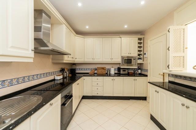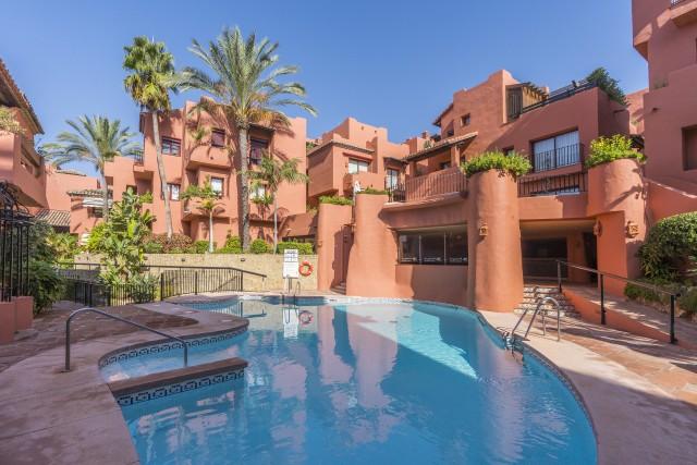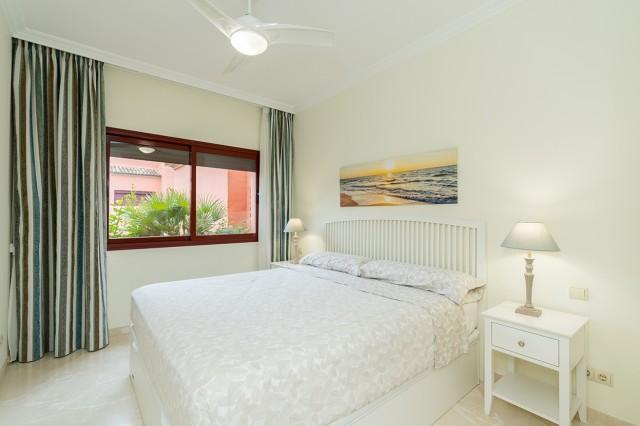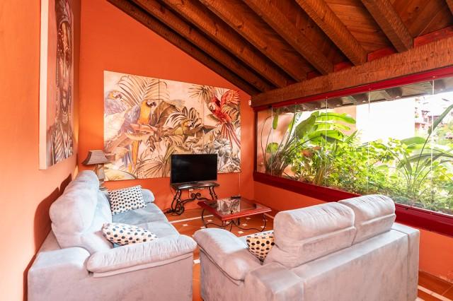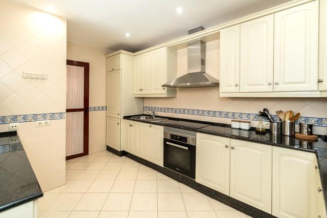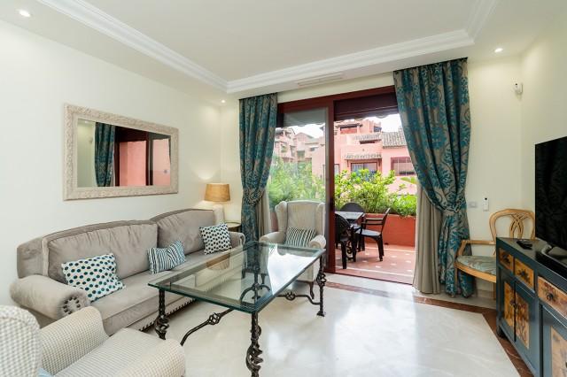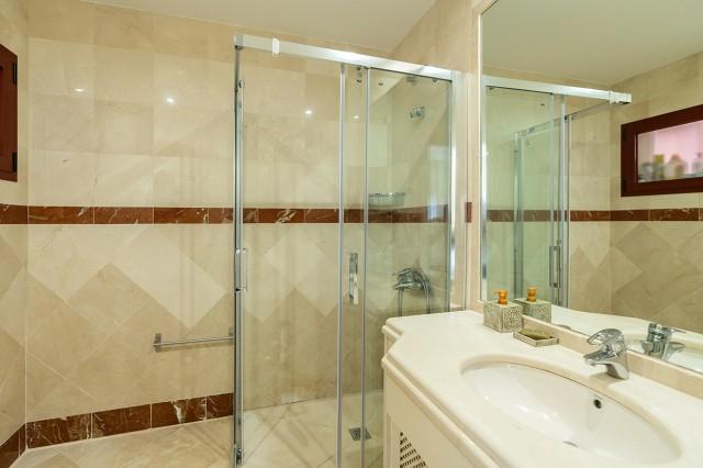 Beautiful and well kept apartment on a first floor with pool views and east orientation in the complex Los Jardines de Don Carlos in Elviria in East Marbella. All on one level, the apartment offers three bedrooms, two bathrooms, a living and dining room and an ample kitchen with new appliances and with separate laundry room. There is a covered and glazed terrace in the entrance and a second terrace in front of the living room. Double glazing windows, electric shutter, marble floors, electric awning in the living room terrace, new AC hot and cold unit. Underground parking space, storage room and lift. Ideal as a permanent residence or as a holiday home. Gated complex with three pool areas, small gym, sauna and beautiful tropical gardens. The beach is just a small walk away as well as all local amenities. The centre of Marbella is a 10 minute drive away.