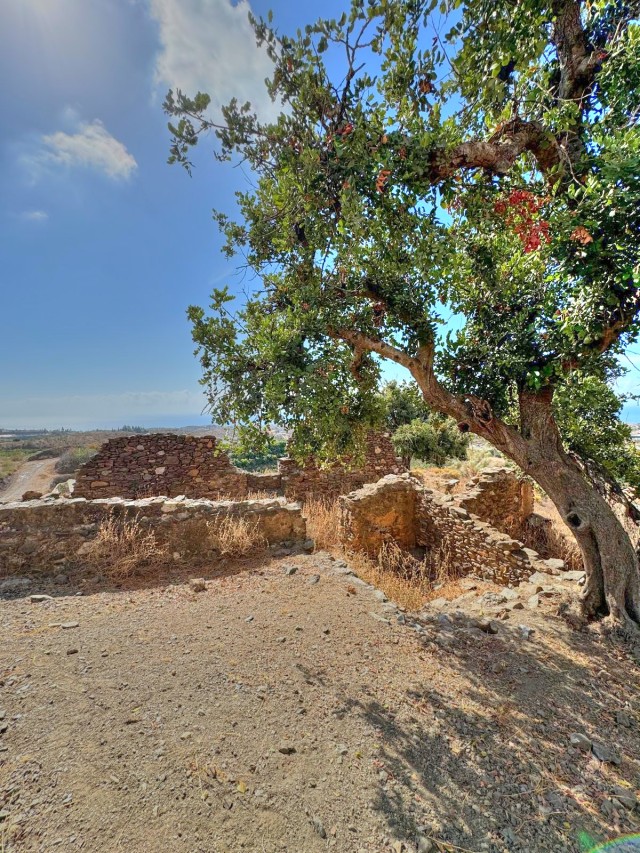 The land is home to almond and olive trees, as well as a small ruined structure. Access is easy via a well-maintained dirt road.