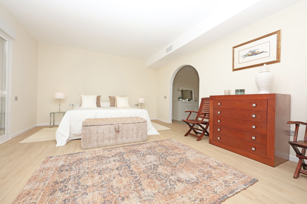 Outside, the villa offers a beautifully landscaped garden, a large private swimming pool, and a covered outdoor kitchen with a barbecue—ideal for making the most of the Mediterranean lifestyle all year round. There is also a garage with space for two vehicles.