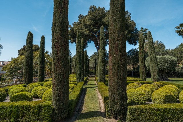 Covering a total built area of 2,009 square meters and situated on an expansive 4,131-square-meter plot, the estate is surrounded by exquisite palatial gardens. These grounds are a visual masterpiece, meticulously landscaped with rows of Italian cypress and mature, manicured olive trees that lend a serene Mediterranean character to the outdoor spaces.