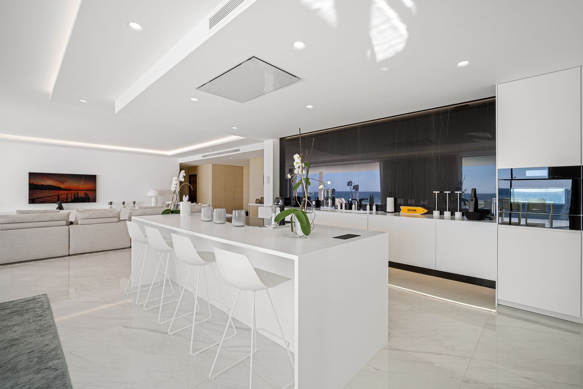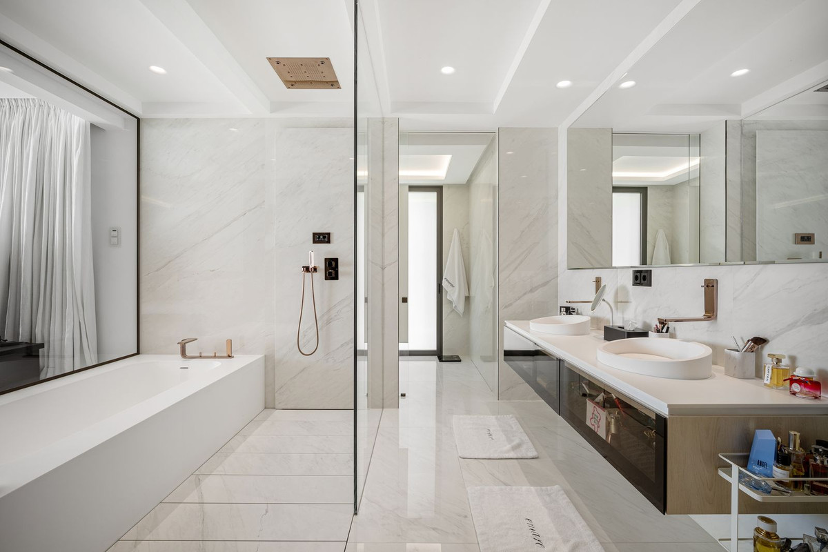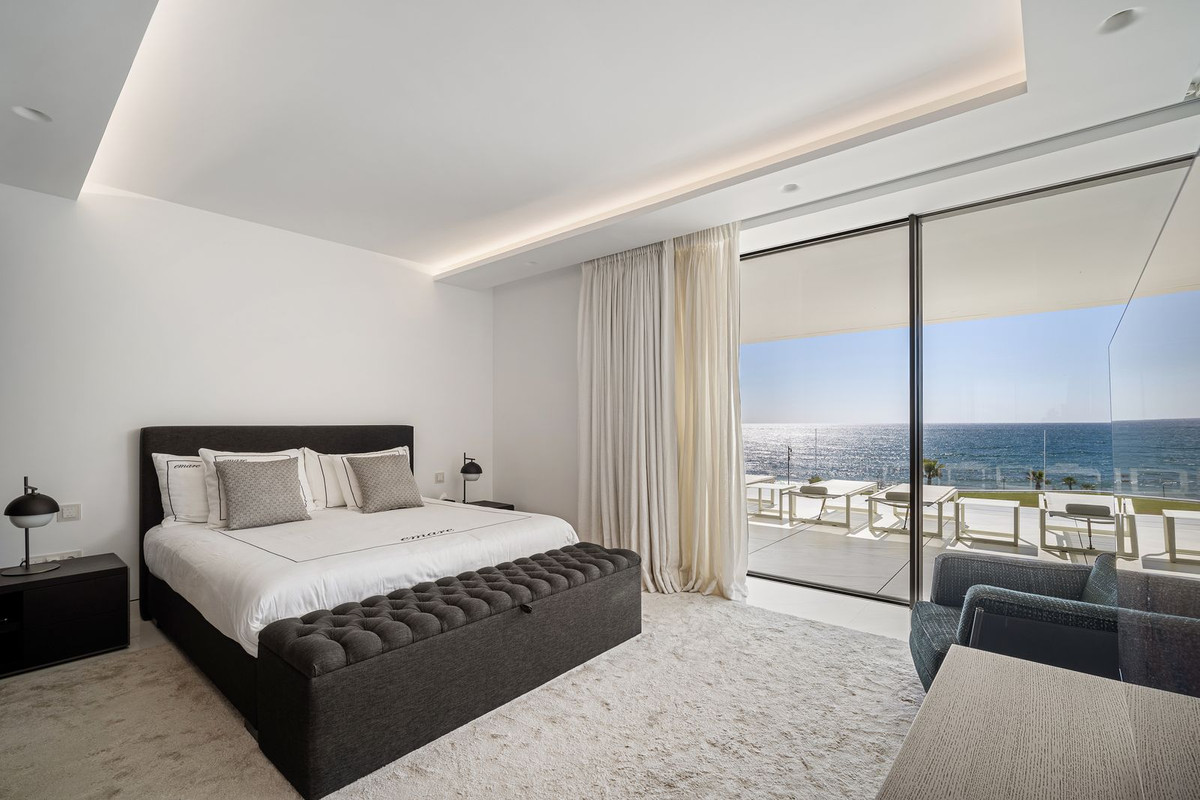 Superb 548 m² apartment located on the seafront in Estepona, with exceptional panoramic views of the Mediterranean. It offers 5 bedrooms, 5 bathrooms (4 of which are en suite), 6 toilets, and a magnificent 129 m² private terrace facing southeast.
