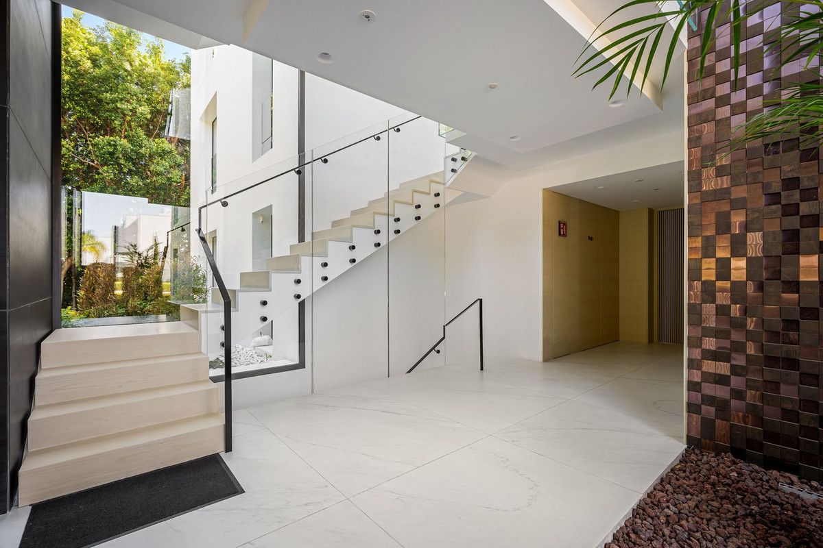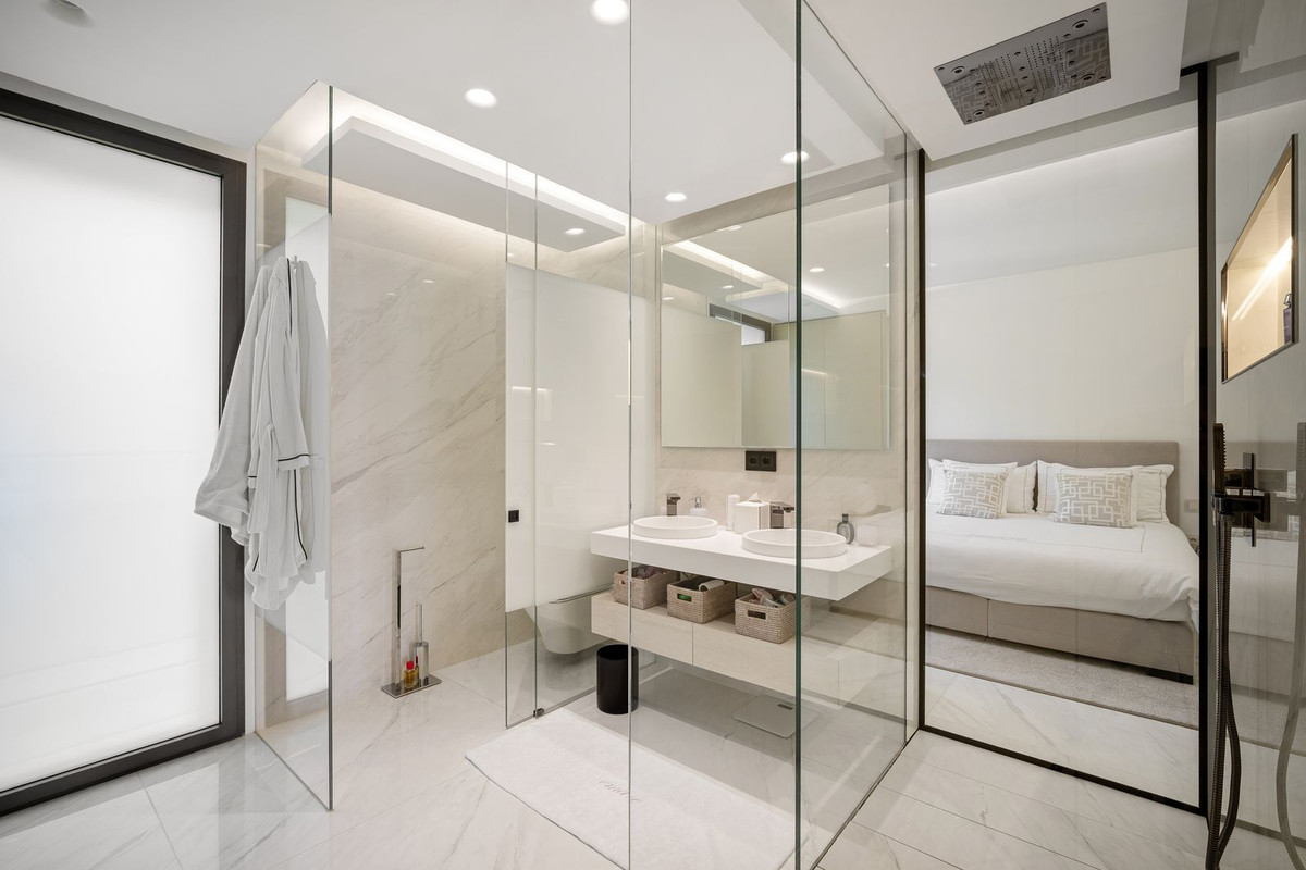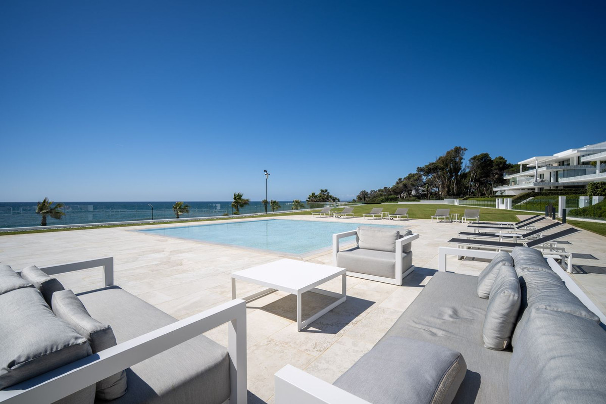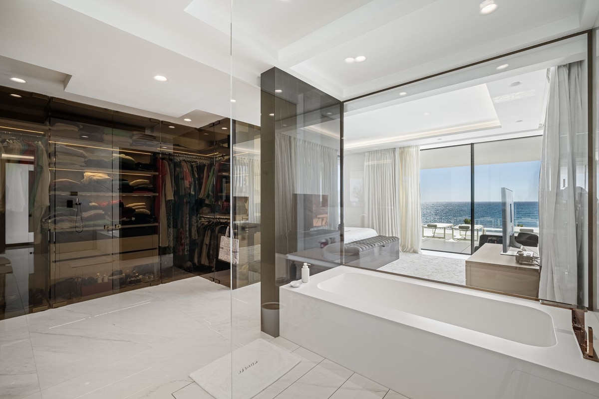 Superb 548 m² apartment located on the seafront in Estepona, with exceptional panoramic views of the Mediterranean. It offers 5 bedrooms, 5 bathrooms (4 of which are en suite), 6 toilets, and a magnificent 129 m² private terrace facing southeast.