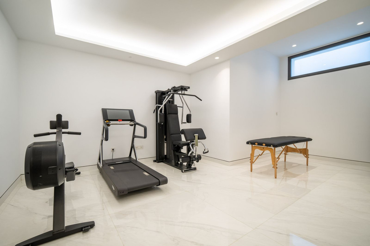 The private elevator provides direct access to a large basement, ideal for a bedroom, a wellness area, a home theater, or a games room. A private gym completes this unique space (Technogym equipment).