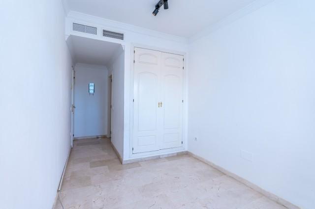 Apartment with sea views in Elviria next to Santa María Golf offering two bedrooms, two bathrooms, a very large kitchen, ample and bright living room and terrace. The apartment offers AC hot and cold, marble floors, underground parking space and storage room. Gated complex with three pool areas, gardens and within a short drive to the beach and all local amenities.