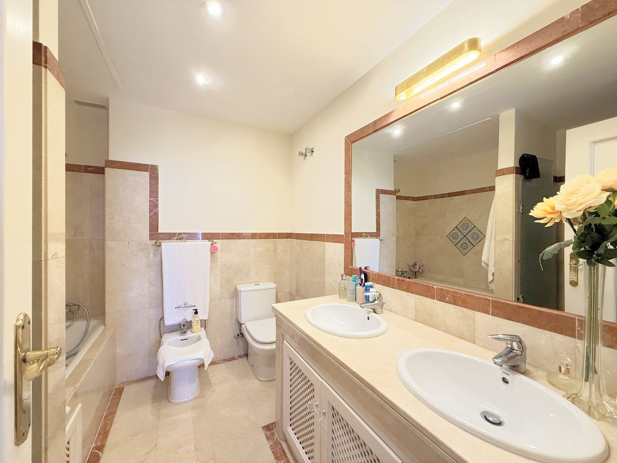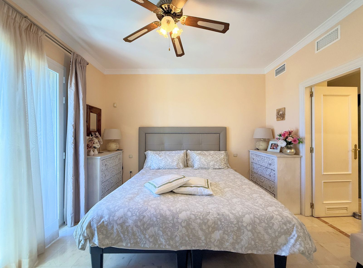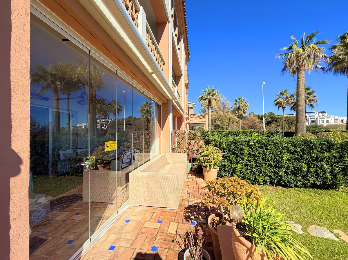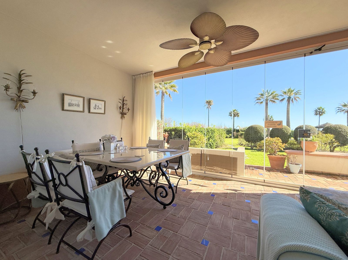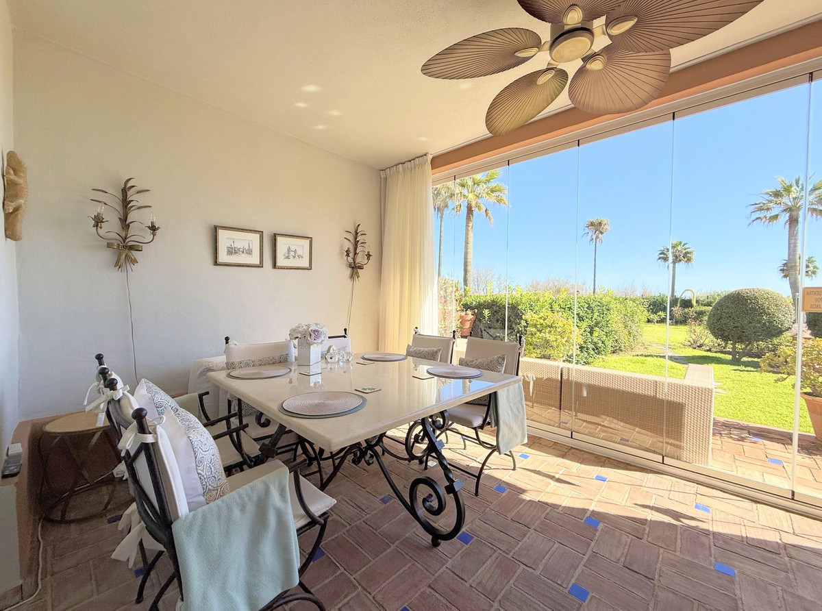 Magnificent apartment in a luxury complex on the beachfront, with a terrace and private garden, located in Casares Playa, within a prestigious development featuring a charming Moorish design inspired by the essence of Al-Andalus. Enjoy direct access to the promenade and the stunning local beaches, with a wide selection of restaurants, beach bars, and leisure areas. Situated in a privileged location between Estepona and Puerto de la Duquesa, just a five-minute drive from both, it offers the perfect combination of exclusivity, comfort, and Mediterranean lifestyle. Its south-facing orientation ensures abundant natural light throughout the day, creating a warm and welcoming atmosphere in every room. Recently renovated, the property stands out for its careful decoration and excellent condition, ready to move in. The kitchen, updated in 2023, features Siemens appliances, ivory-colored marble floors, and all windows fitted with mosquito screens. The apartment is all on one level, with two spacious and bright bedrooms designed for maximum comfort and rest. A cozy living-dining area with a fireplace opens onto the enclosed glass terrace overlooking the garden, the communal pool, and the beach. The development offers 24-hour security, ensuring peace of mind and privacy, as well as exclusive amenities such as two magnificent pools, one of them heated, allowing year-round enjoyment. The property also includes 2 underground parking spaces and 2 storage rooms, providing convenience and extra storage. Its strategic location makes it ideal as a permanent residence or an investment, with high potential for both holiday and long-term rentals. Close to prestigious golf courses, such as Finca Cortesín, as well as marinas, restaurants, and all necessary services, this property represents a unique opportunity. If you are looking for an exclusive apartment on the beachfront, with all the comforts in one of the most sought-after areas of the coast, don’t miss this opportunity.