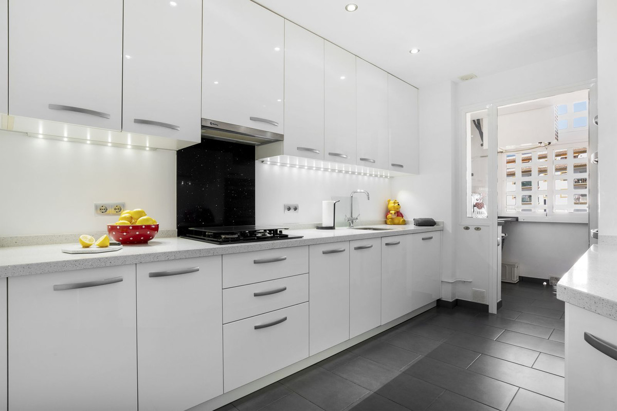 A beautifully renovated modern and bright kitchen comes fully equipped with all modern top of the range Balay and Siemens appliances with soft closing wall and base storage cupboards and drawer units which are of an Italian design and finished to a high-end quality, complete with contrasting Silestone worktop surfaces, The Hob and extractor fan are Balay and the hob has four gas rings. There is a choice of two built-in ovens, one small and one large, which is a very useful feature. The Siemens Fridge Freezer and Balay Dishwasher are also built in. There is the added benefit of a built in under sink water filter system with a dual-function tap providing filtered drinking water. Adjacent to the kitchen, a glass door leads onto a very useful utility room which houses the mains gas boiler, air con machine, washing machine, and more storage cupboards with worktop surfaces.