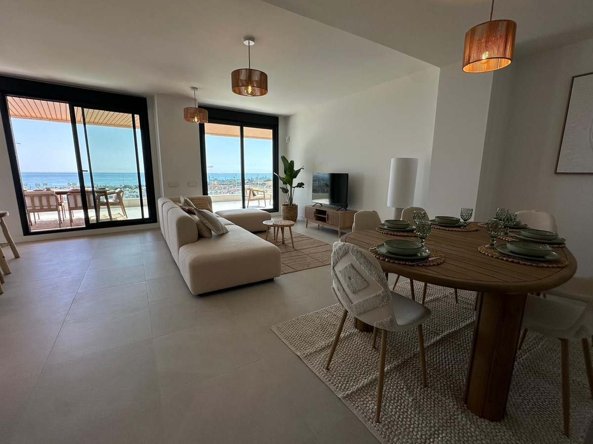 Step into this incredibly spacious property, featuring a 52m² living room with large windows that open up to a generous terrace, providing an opportunity to admire the wonderful sea views and the stunning sights of Gibraltar and the African coast. The open concept kitchen is fully equipped with top-of-the-line Bosch appliances, all under guarantee.