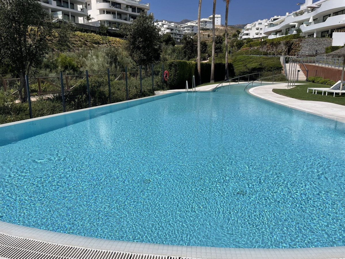 This elegant middle-floor apartment is located in the prestigious Higuerón West I community, offering the perfect combination of contemporary design, natural light, and resort-style living. With 119.65 m² of interior space, an amazing private terrace with views over the landscaped communal garden of 39.64 m² as well as a smaller terrace with access from the master bedroom of approx. 3 m², the home invites you to enjoy both indoor comfort and outdoor living.