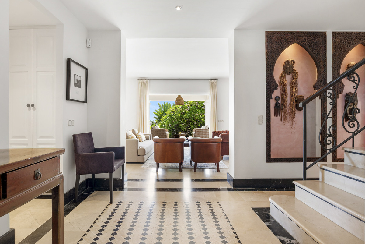 This villa in Nueva Andalucía beautifully combines Andalusian architecture with antique accents and subtle Moroccan touches, creating a home full of warmth and character.