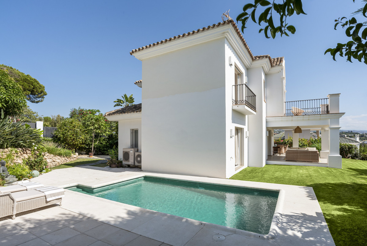 Outdoors, the villa embraces Marbella’s lifestyle with a private south-facing garden, a sparkling swimming pool, and both open and covered terraces ideal for year-round entertaining. From the ground floor, there are views of the sea, while just a short walk away lie the beaches, Puerto Banús, and an array of restaurants and boutiques. Families will also appreciate the proximity to top international schools, including Aloha College, the Swedish School, and the American College.
