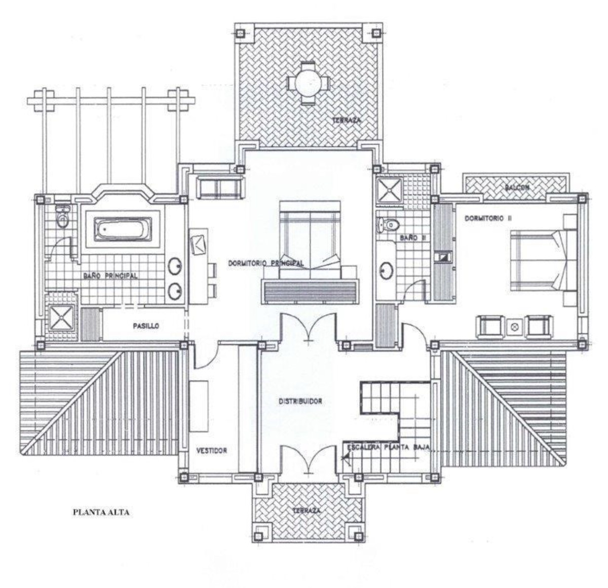 The grand double-height entrance hall sets the tone, leading into a bright living room with fireplace, a separate dining room, and a spacious kitchen that opens onto a tranquil patio. Also on the ground floor is a large en-suite bedroom, while the first floor offers the master suite with walk-in closet, private terrace, and a luxurious bathroom, along with a second en-suite bedroom. If desired, the layout allows for the simple addition of a fourth bedroom within the main house, giving even greater flexibility.