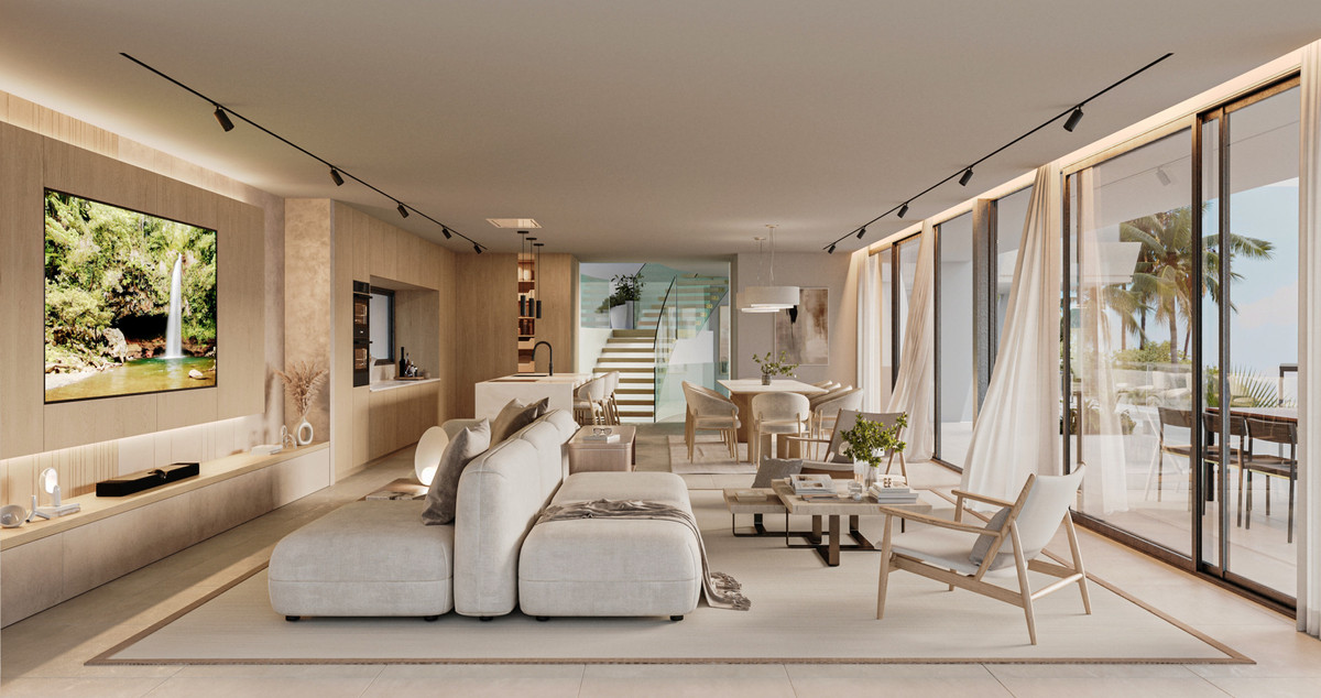 The residence is being built to the highest standards with Porcelanosa large-format tiling throughout, Italian Novamobili wardrobes, and elegant Albed interior doors. The SieMatic kitchen will be fully equipped with premium appliances from Gaggenau, Liebherr, and Technic, while bathrooms will feature exquisite fittings from Villeroy & Boch, Duravit, Bernstein, and Hansgrohe.