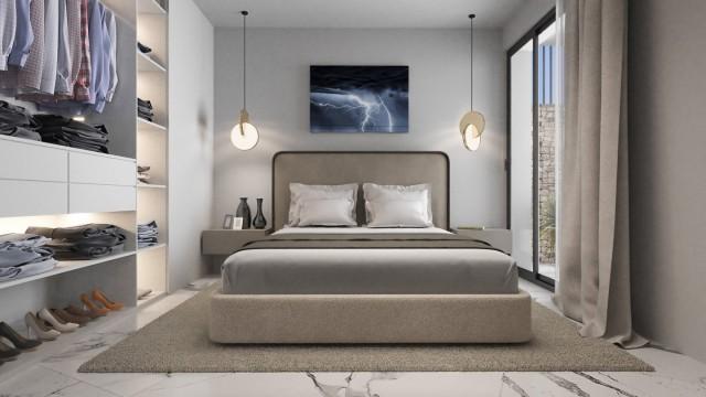 The villa's interior is equally impressive. The master bedroom features a spacious dressing room, providing ample storage for your belongings. The open-plan living room connects seamlessly with the kitchen and dining room, making it the heart of the home. A cozy fireplace adds a touch of warmth to the space, while large sliding glass doors lead to the terrace, creating a harmonious indoor-outdoor living experience.